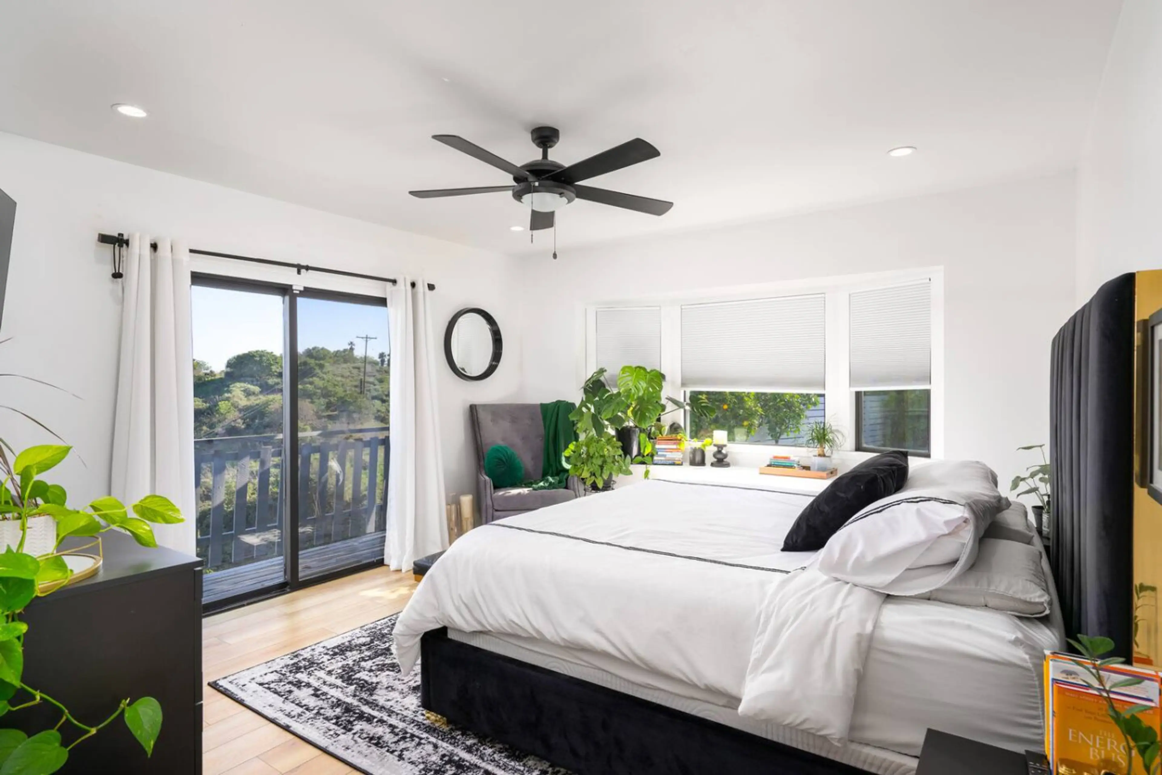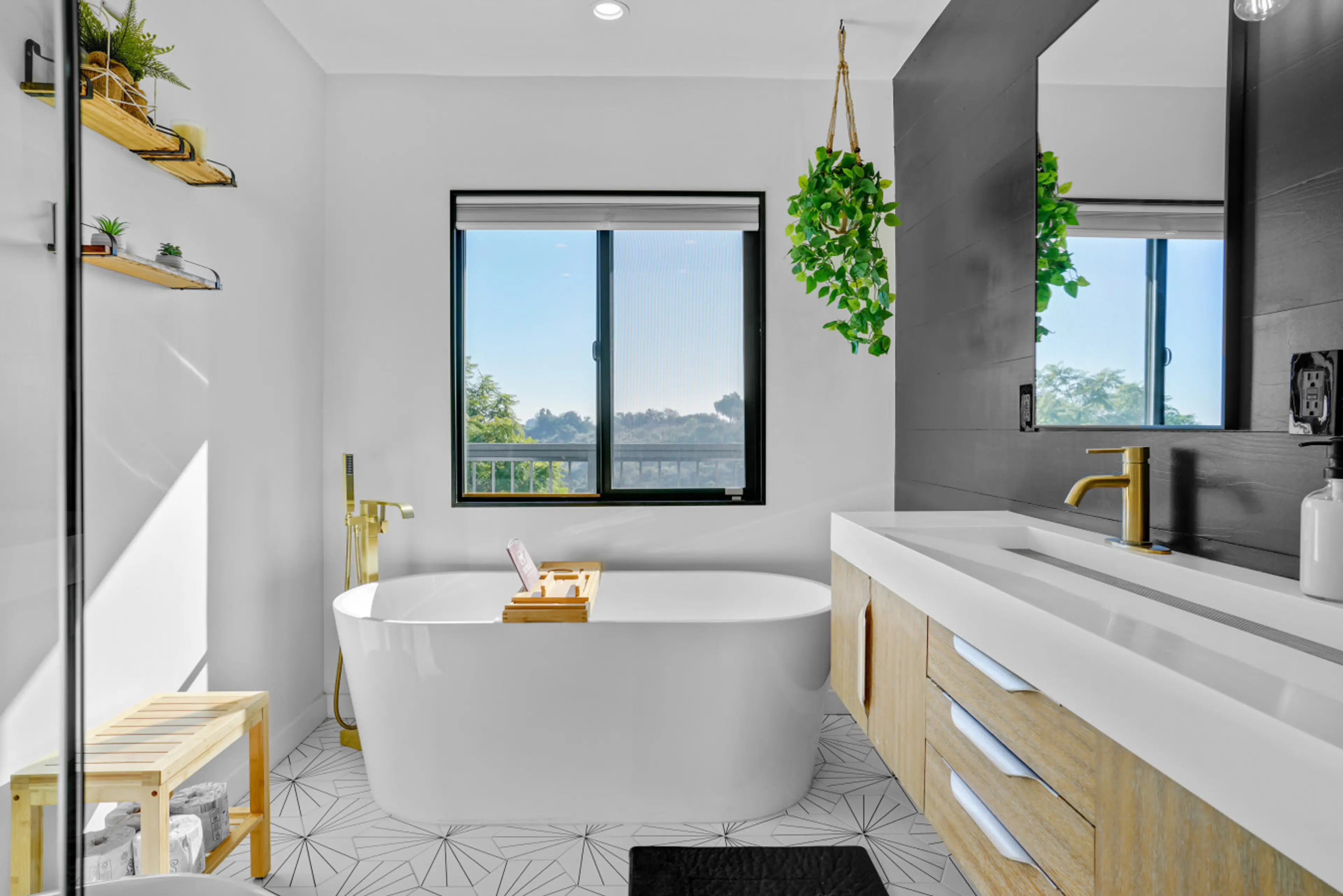 Enjoy this hilltop retreat with stunning panoramic views and private access to Kenneth Hahn Park. This beautifully designed 3-bed, 3-bath home features a serene backyard with a putting green, spacious lounge areas, and a Tesla charger. Inside, enjoy a fully stocked kitchen, bright open living spaces...